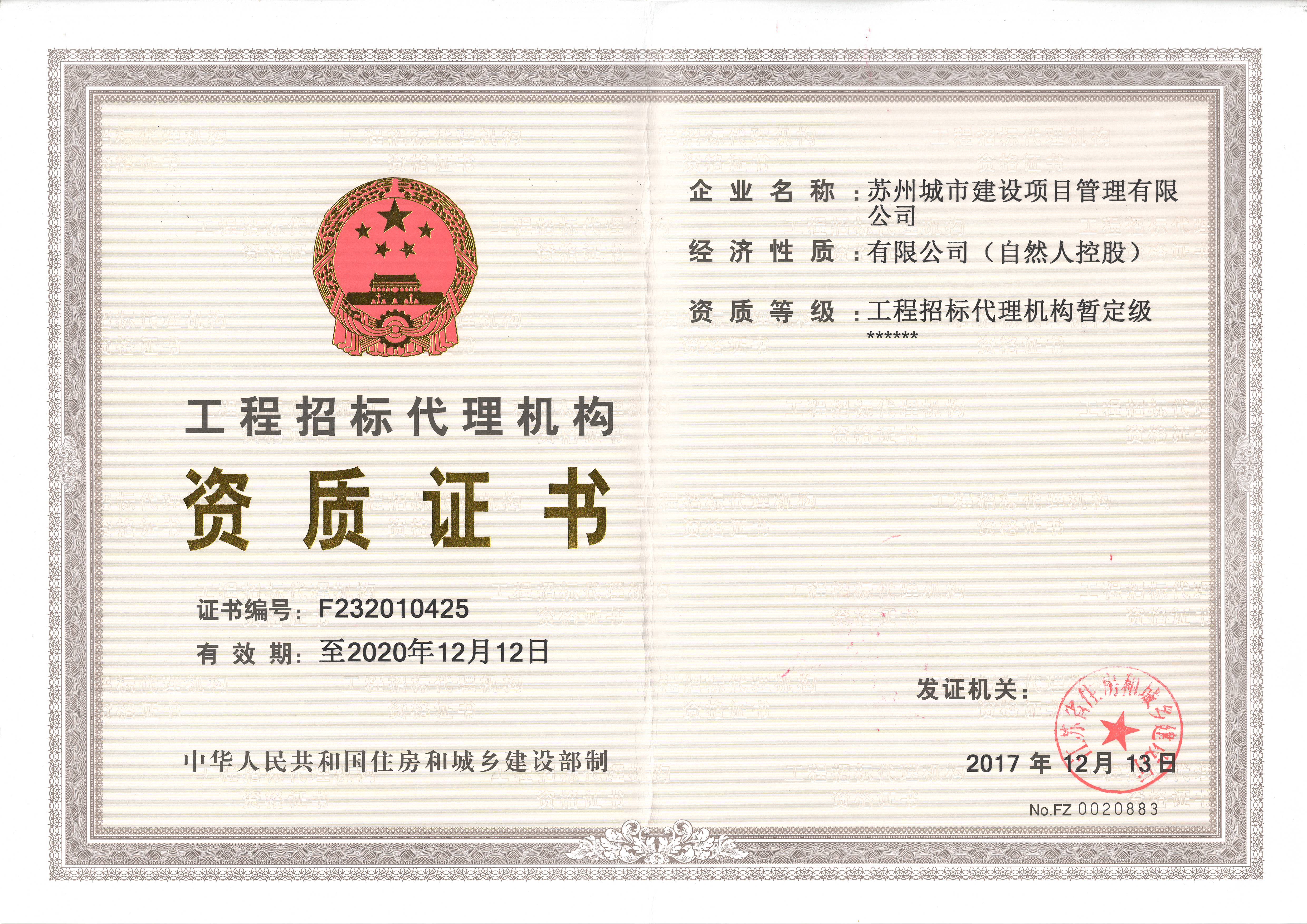 招標代理資質證書
