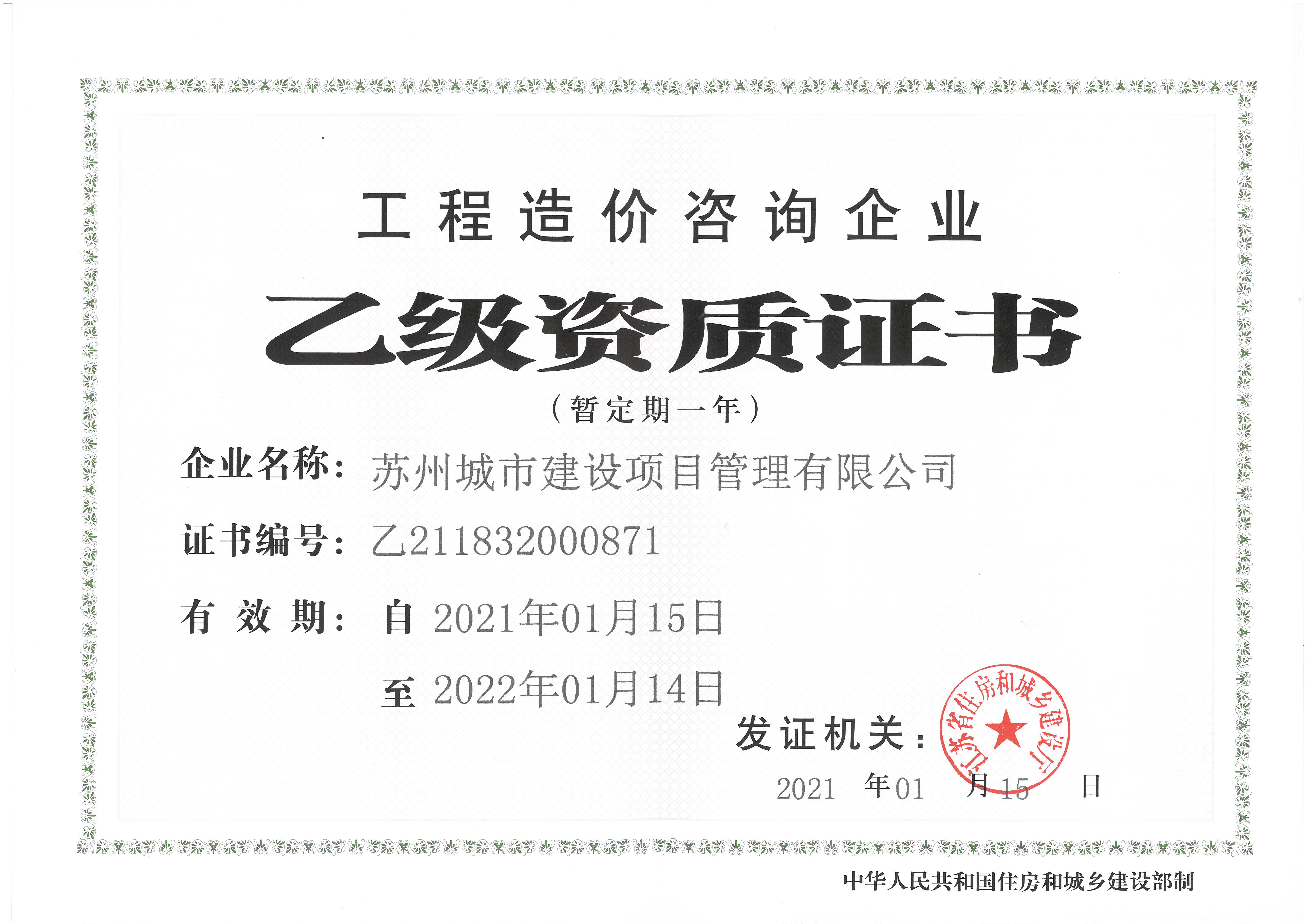 造價咨詢資質證書